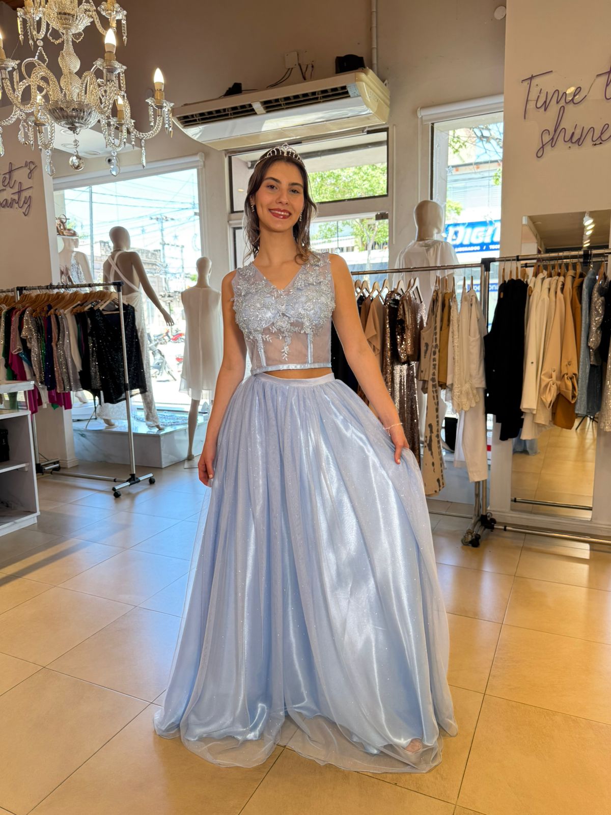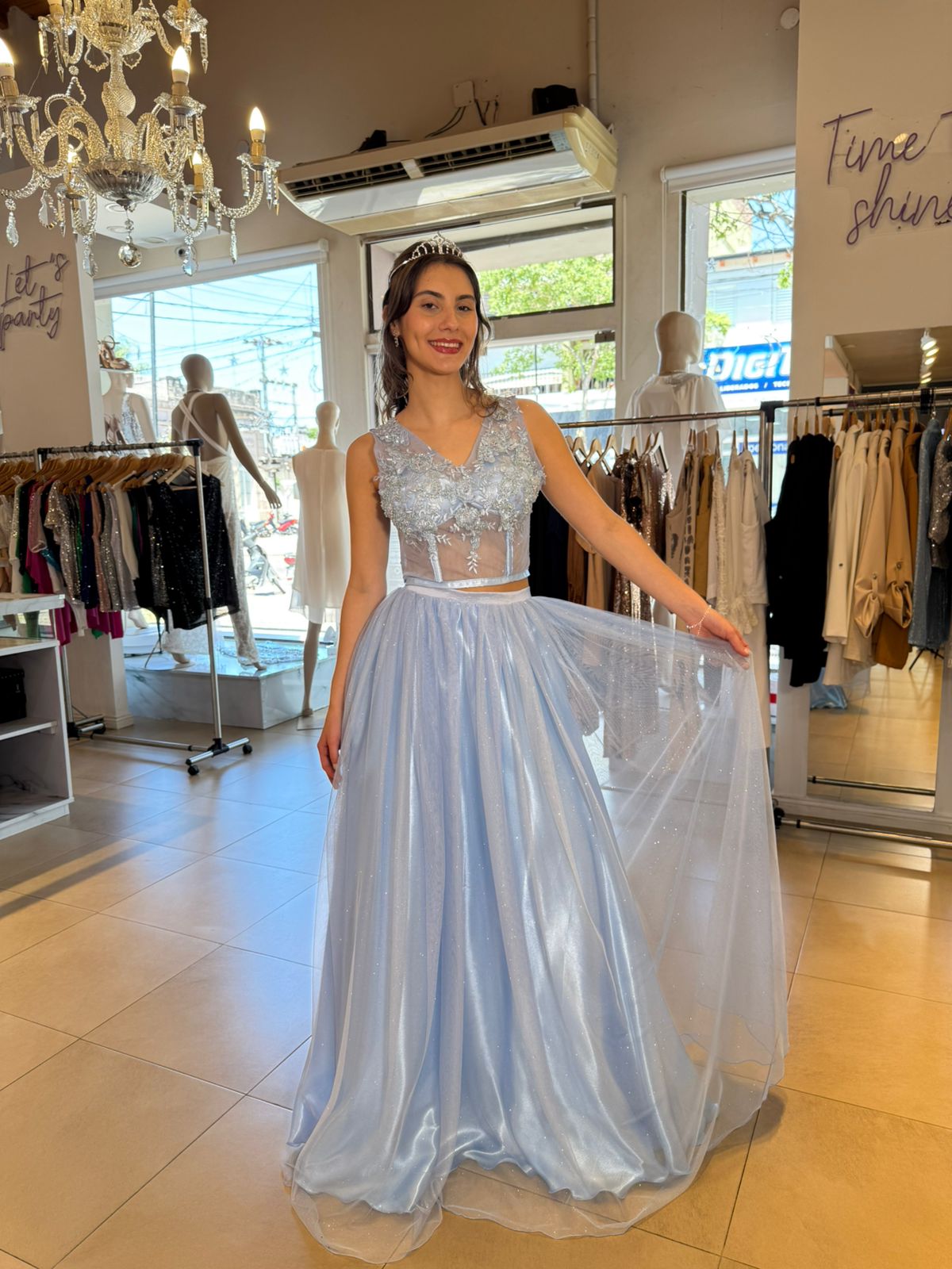 Nuestros conjuntos dos piezas sin dudas son la estrella. su pollera esta compuesta por tres capas de diferentes telas que finaliza en un tul con mucho glitter super cómoda y amplia crea una figura estilo princesa es practica en poner y llevarla, acompaña su corset que esta bordado completo con diferentes diseños y acompaña siempre el brillo y los stras, en su espalda sus lazos hacen el detalle exclusivo de corseteria se entrecruzan y forman una figura armoniosa y super fina que complementa el estilo princesa para tu noche única. Destacamos los diferentes combinaciones de colores y sus diseños exclusivos perfecto para ti.