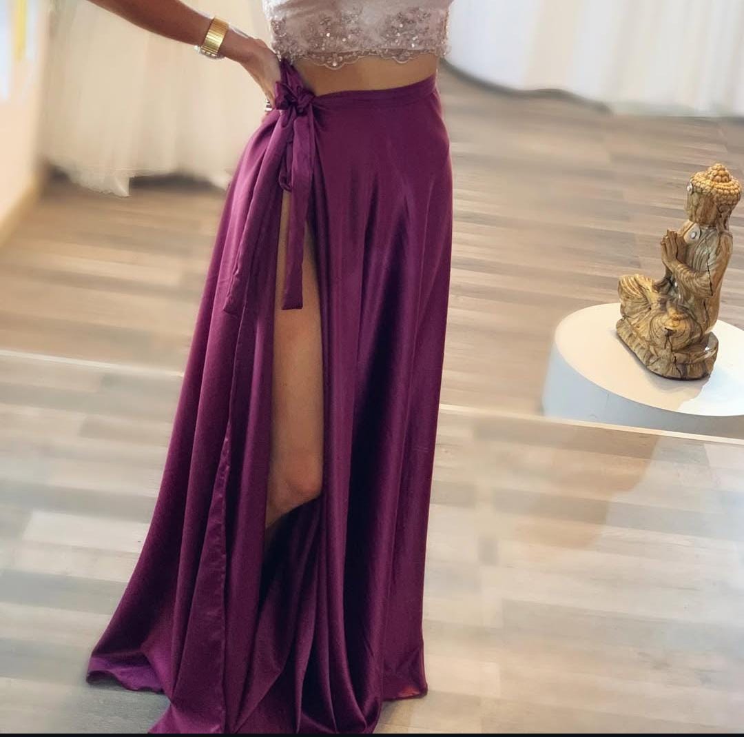 Polleras evase en tela de saten con lazo regulables, cómodas y versátil.