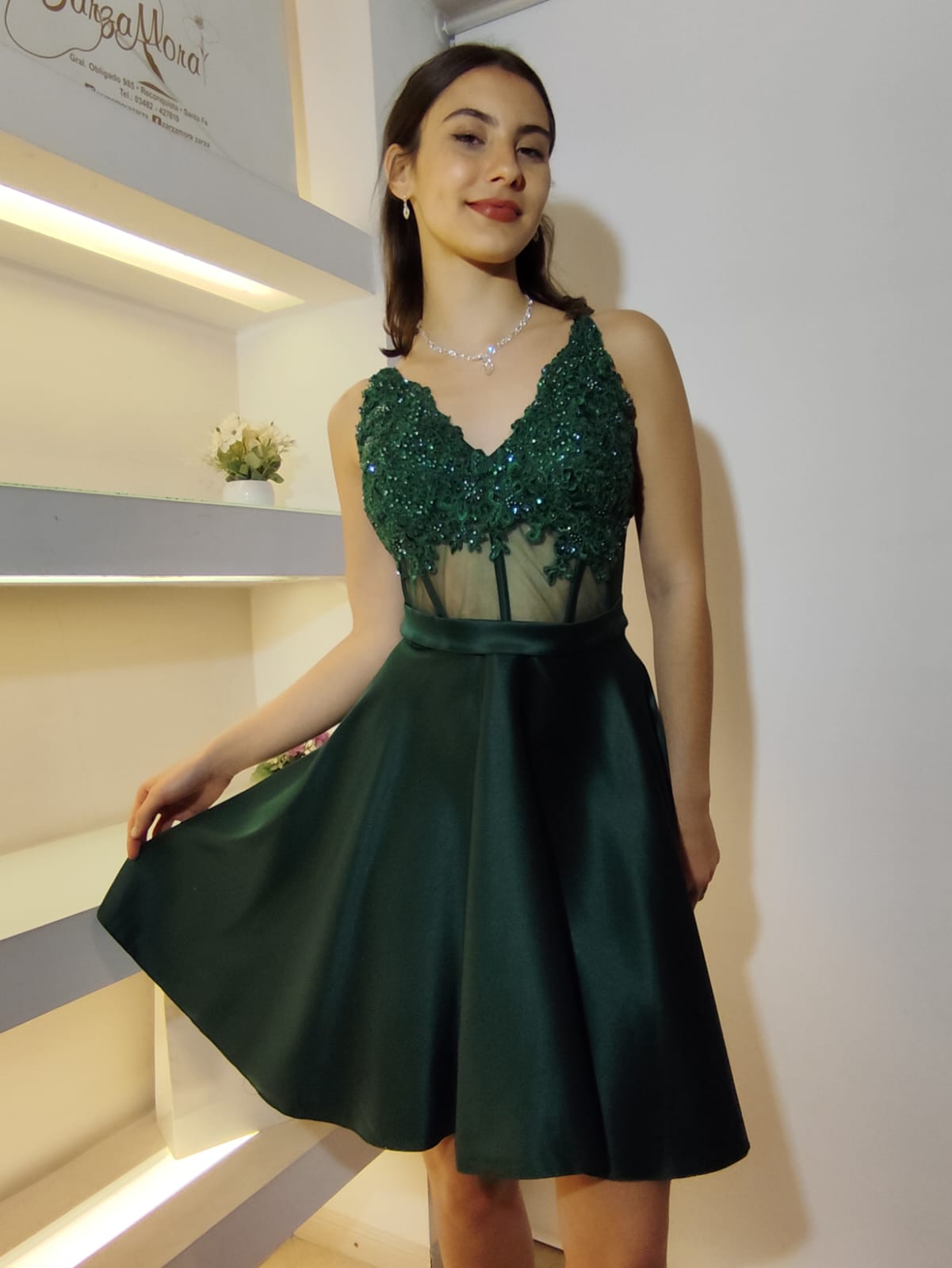 Vestido verde benetton con bordado en su pechera y falda evase un diseño exclusivo.