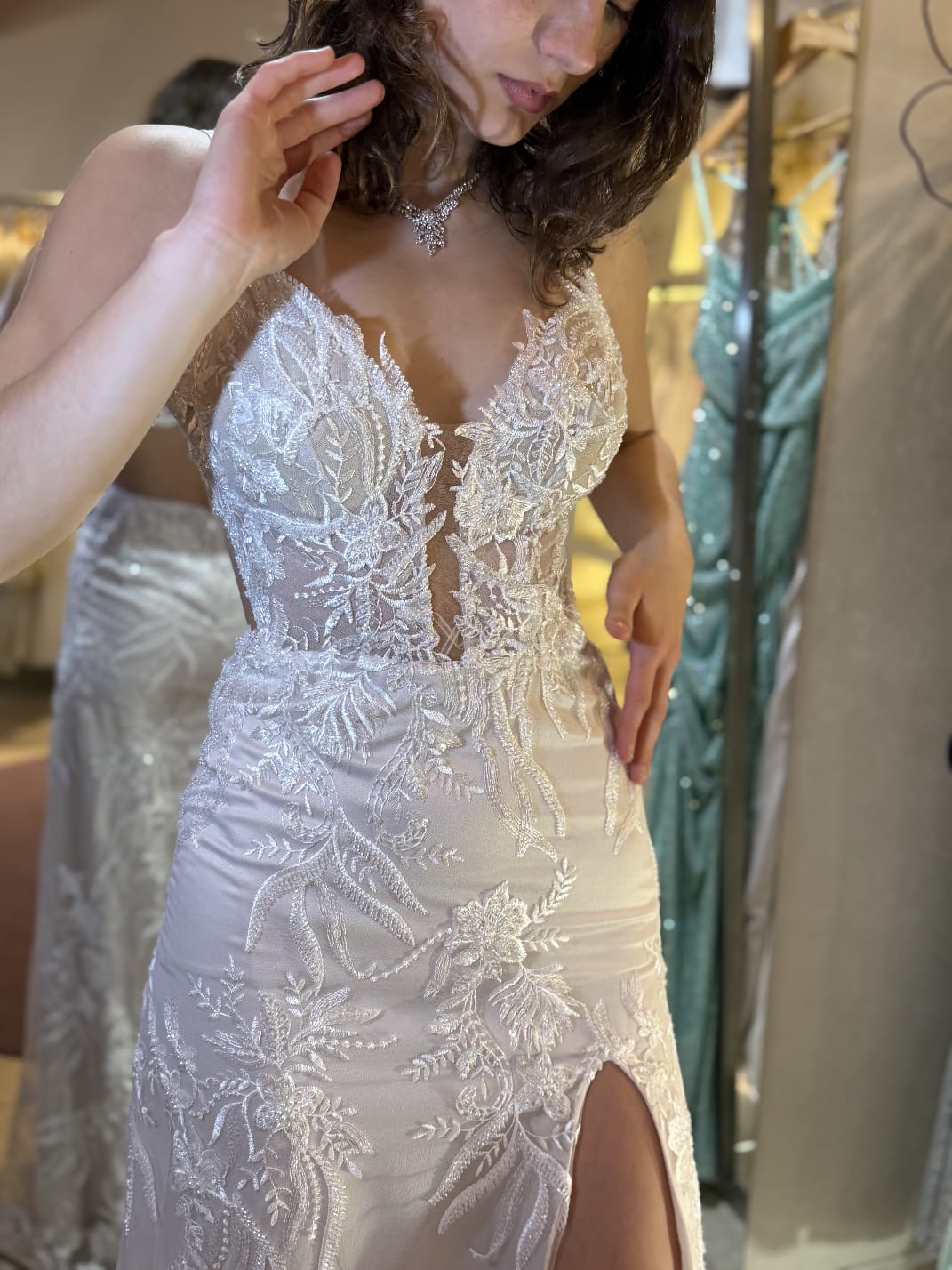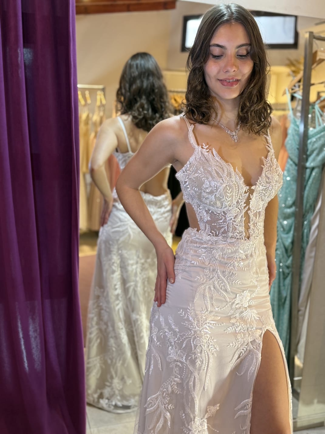 Vestido blanco bordado sirena diseño único y exclusivo.